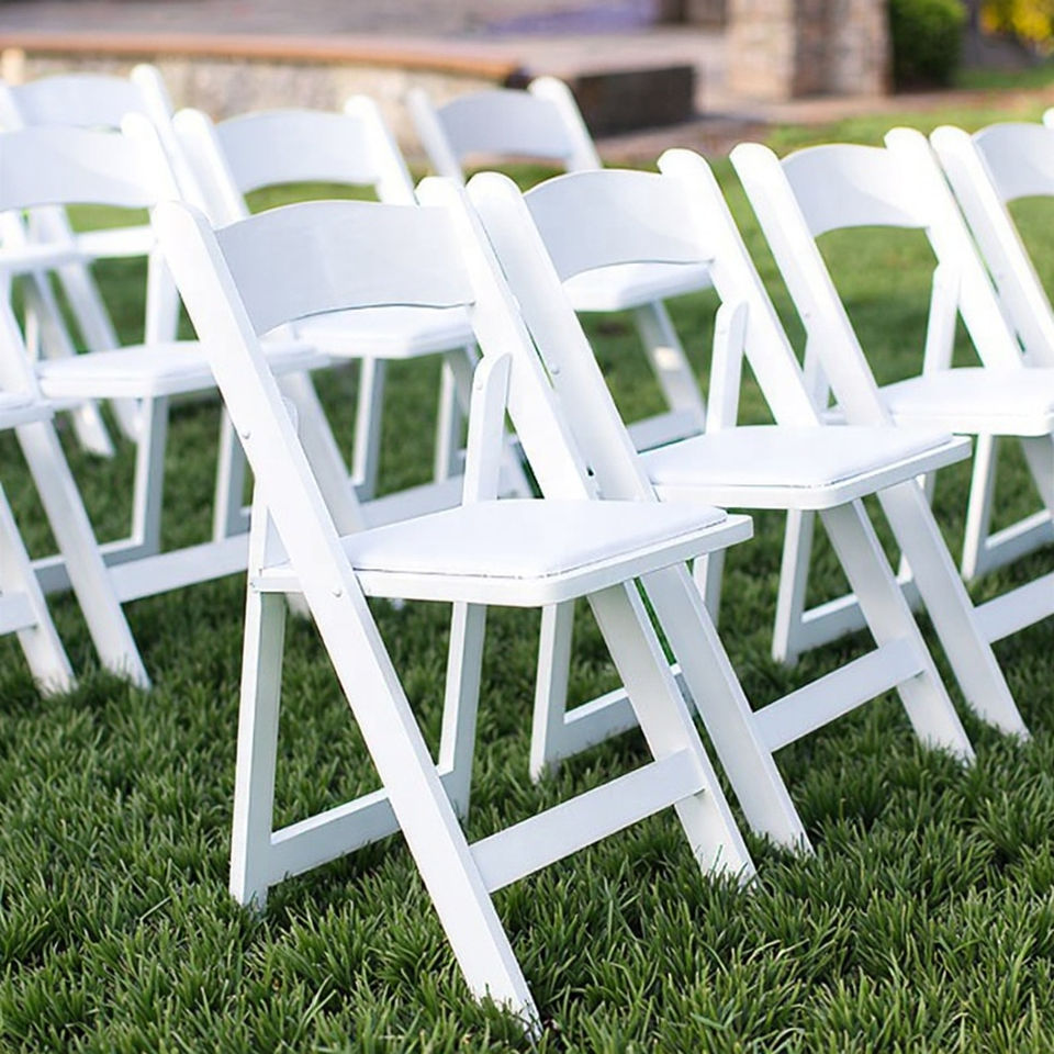 เก้าอี้พลาสติกเรซิ่นสีขาวแบบพับได้เก้าอี้แบบนิ่มพับได้สำหรับสวนกลางแจ้งงานเลี้ยงสังสรรค์ห้องนั่งเล่นวางซ้อนกันได้