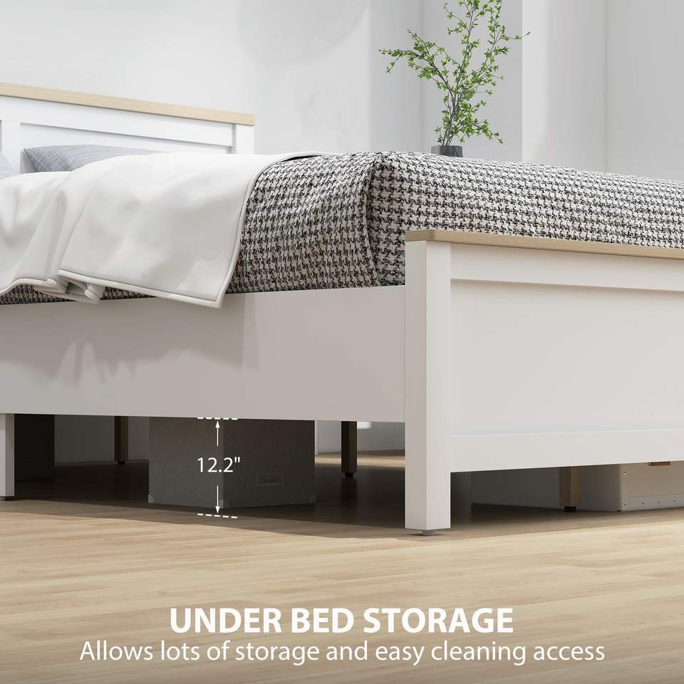 โครงเตียงควีนไซส์สีขาวทันสมัยพร้อมหัวเตียง ประกอบง่าย โครงไม้แบบแท่น ไม่ต้องใช้บ็อกซ์สปริง