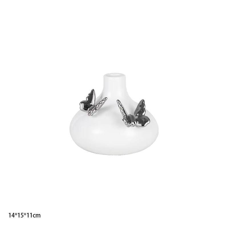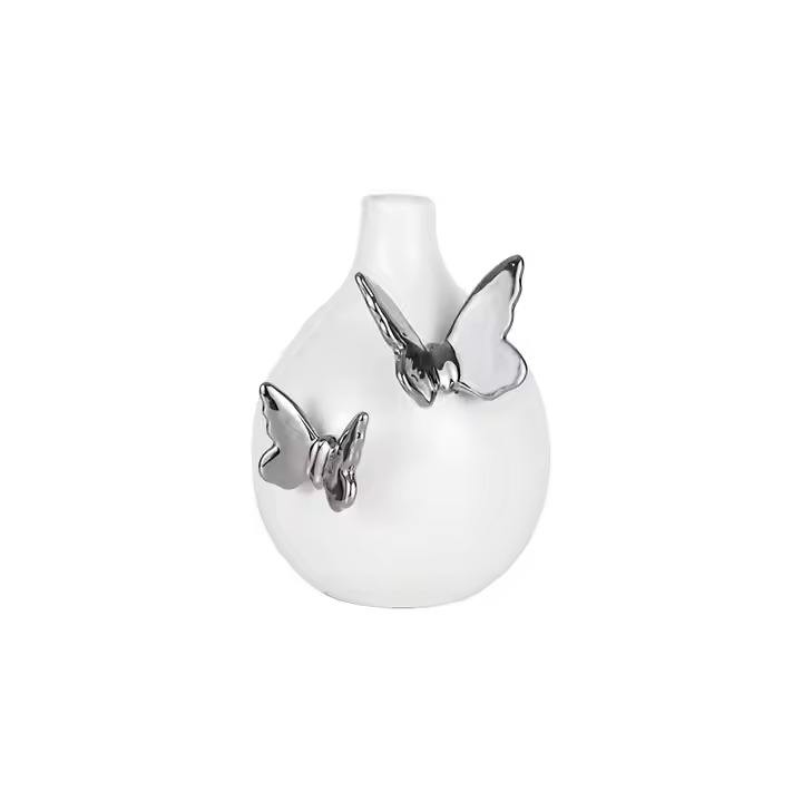 แจกันเซรามิกลายผีเสื้อสีเงินสีขาวแบบทันสมัยสำหรับตกแต่งบ้านแจกันดอกไม้พอร์ซเลนสำหรับตกแต่งบ้าน