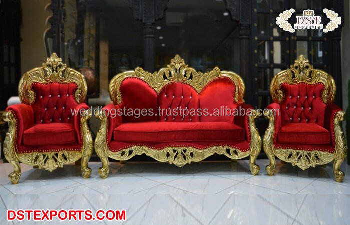 โซฟาแต่งงานสีขาวและสีเงินสไตล์โมเดิร์น โซฟาแต่งงานแบบราชวงศ์ 2 ที่นั่ง โซฟาแต่งงานแกะสลักสีเงิน โซฟาคู่รัก