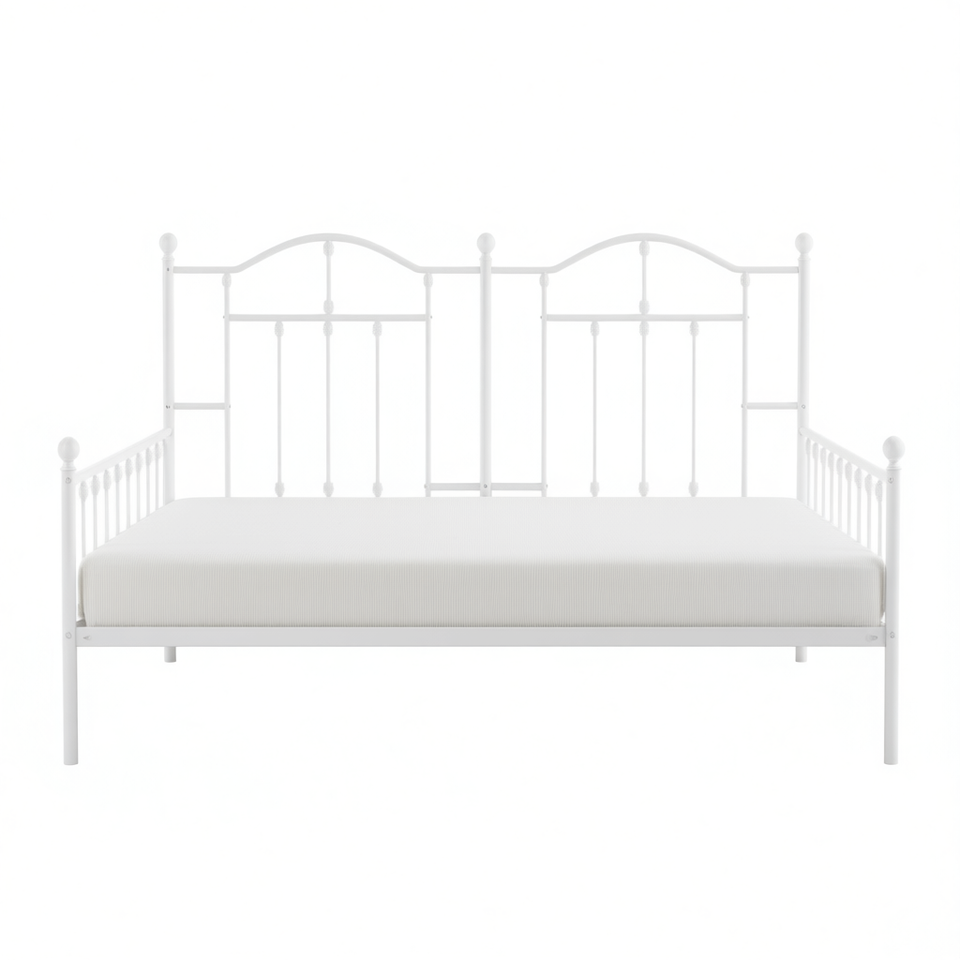 โครงเตียงเหล็กสีขาวทันสมัยขนาดใหญ่ แข็งแรง สำหรับห้องนอน