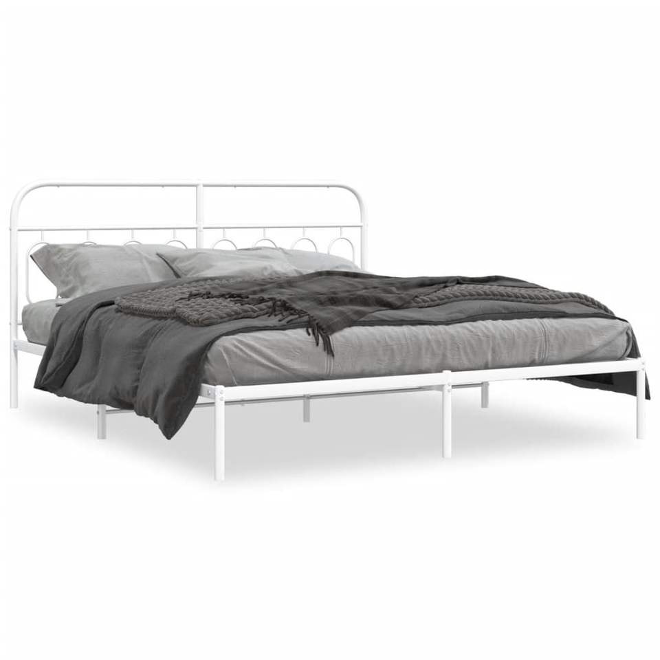 โครงเตียงเหล็กสีขาวทันสมัยรูปทรงสี่เหลี่ยมผืนผ้า เตียงโลหะทันสมัย