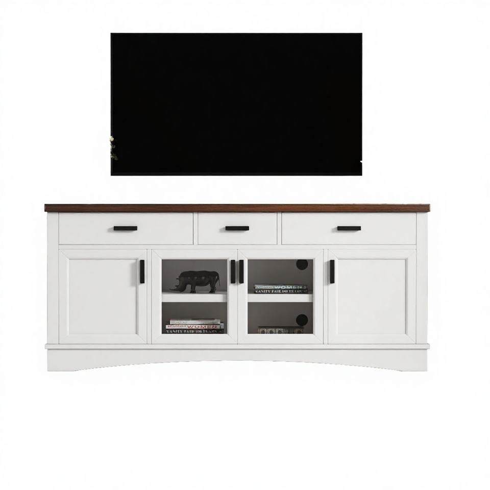 ตู้วางทีวีไม้สีขาวทันสมัย ขนาดกว้าง 67 นิ้ว พร้อมบานประตูและลิ้นชักเก็บของ ชั้นวางปรับระดับได้ เฟอร์นิเจอร์ห้องนั่งเล่น