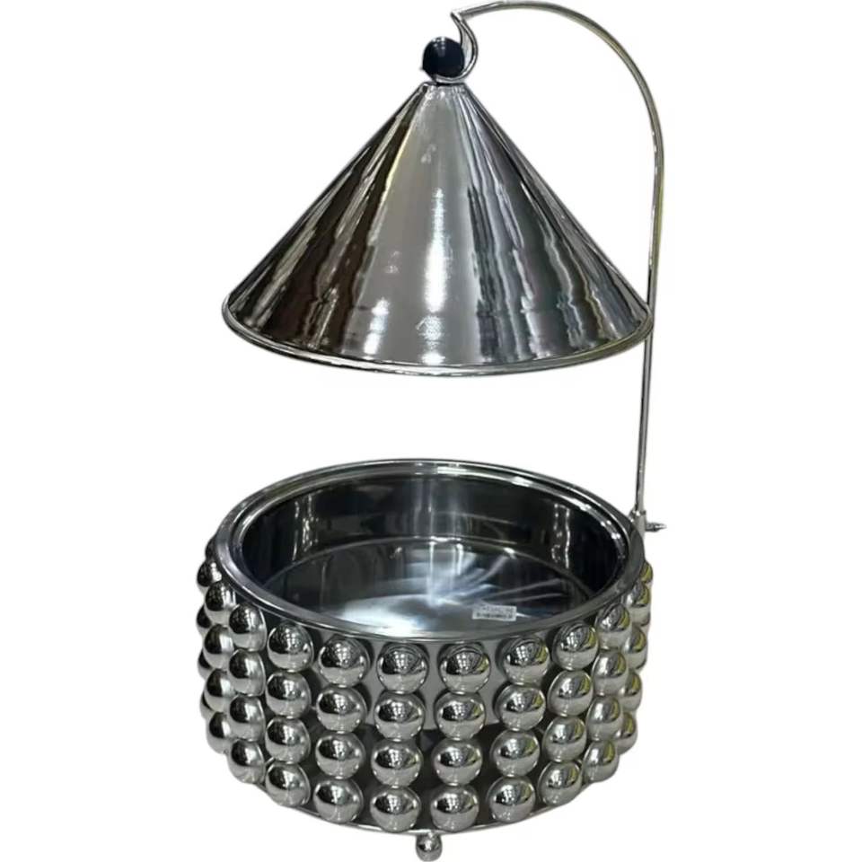 ชามเสิร์ฟลายต้นปาล์มสีขาวทันสมัย ฝาสีเงิน สำหรับรอมฎอน ของตกแต่งโต๊ะอิสลามสำหรับวันอีด ใส่ขนมหวาน ถั่ว หรือลูกอม