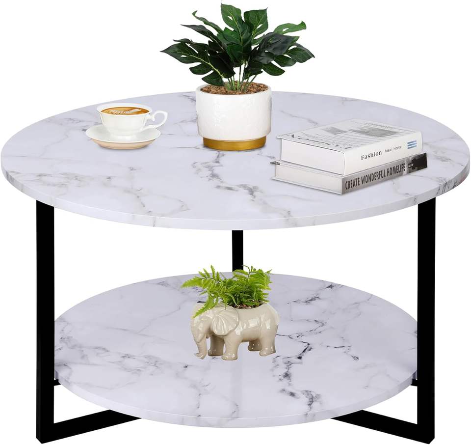 โต๊ะกาแฟหินอ่อนเทียมสีขาวและดำทันสมัยพร้อมที่เก็บของเฟอร์นิเจอร์ห้องนั่งเล่นโต๊ะกลมขนาดเล็ก