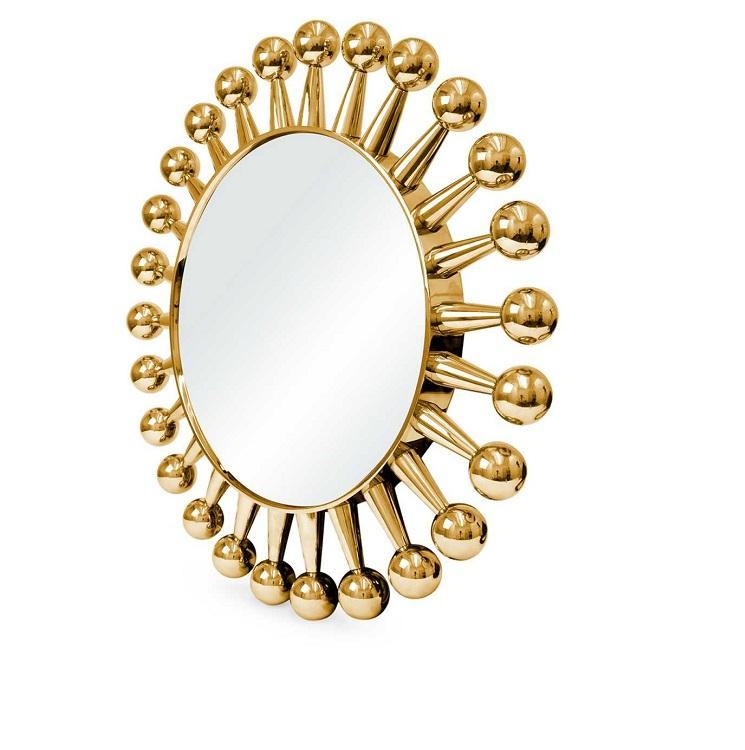 กระจกตกแต่งผนังทรงกลมดีไซน์หรูหราสไตล์วินเทจสีทองสำหรับห้องนั่งเล่น ห้องรับประทานอาหาร และห้องน้ำ