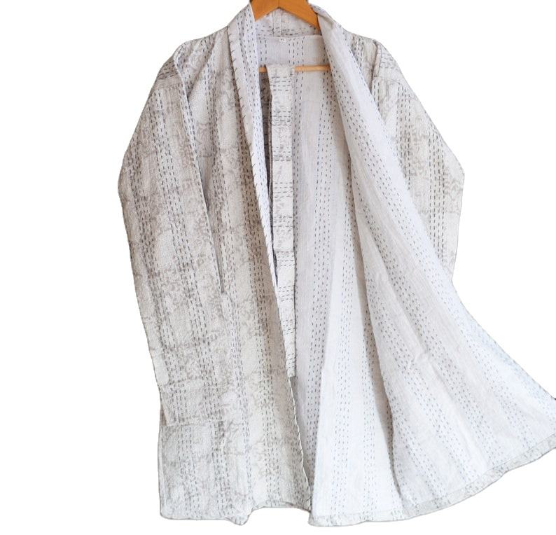 Modern Winter Women's Jacket Vintage Cotton Kantha Block Print Padded Quilted Blazer Sustainability Features-for Long Ladies