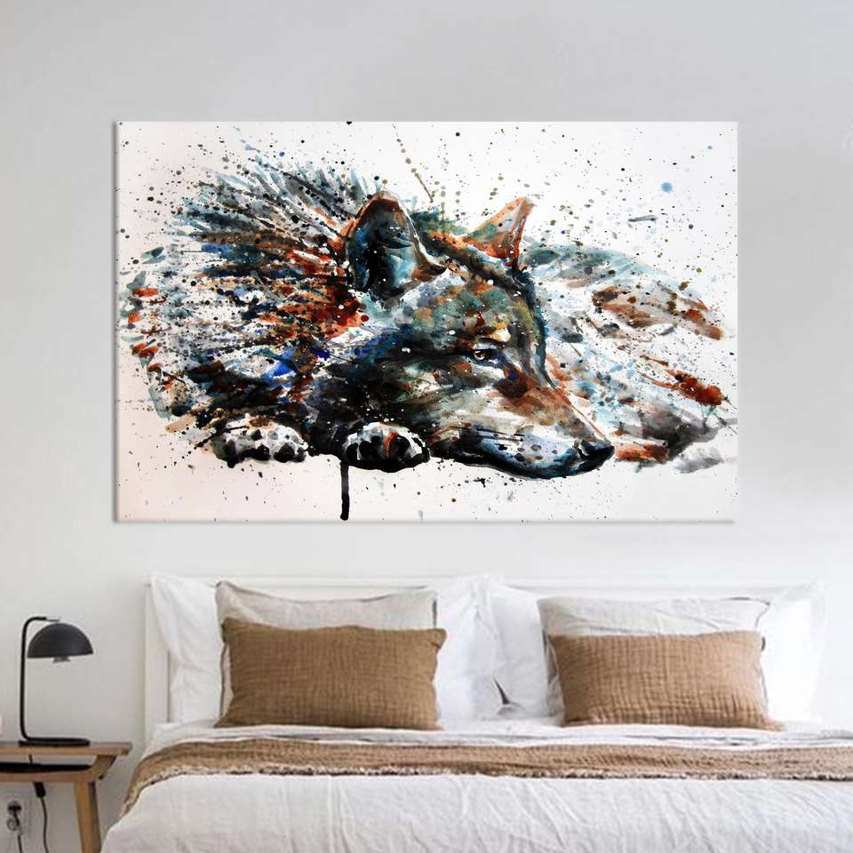 ภาพพิมพ์รูปหมาป่าสมัยใหม่: ผ้าใบประดับผนังกระจกเทมเปอร์ผ้าใบห่อผ้าใบ
