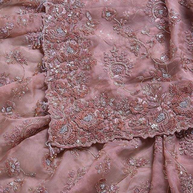 Khadi organza เสื้อส่าหรีสีชมพูผ้าโปร่งบางกับเสื้อชาติพันธุ์สวมใส่สบายและมีสไตล์สำหรับงานแต่งงานงานปาร์ตี้บอลลีวูดสำหรับผู้หญิง