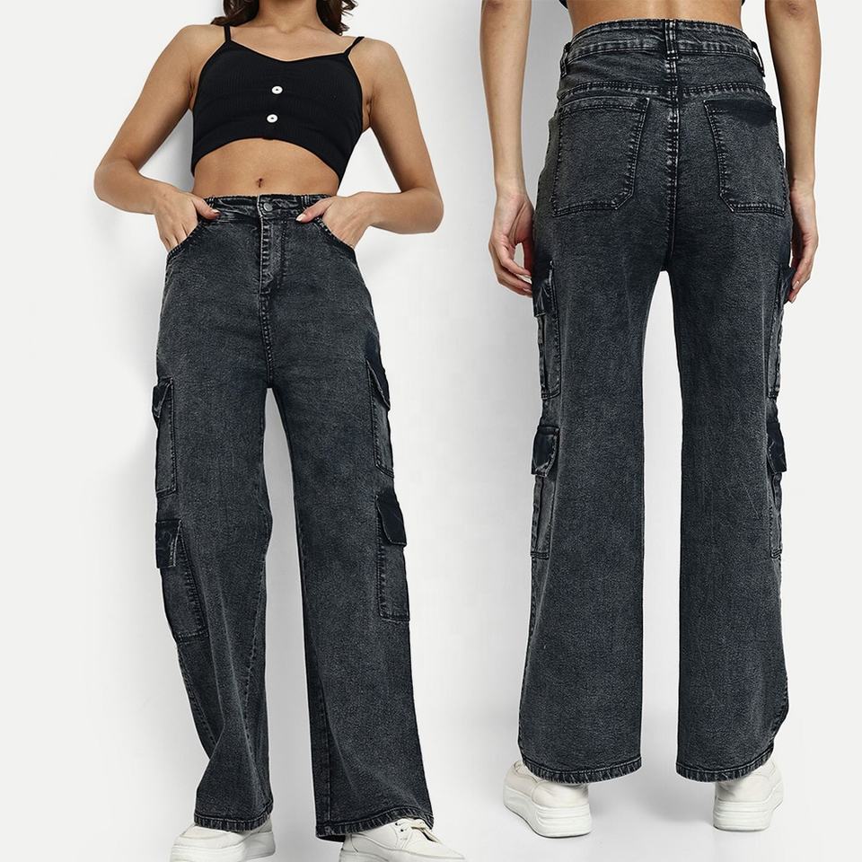 กางเกงคาร์โก้ซักกรดสำหรับผู้หญิงทันสมัยพร้อมสายรัดเอวปรับได้ตะเข็บเย็บปักแบบปรับได้