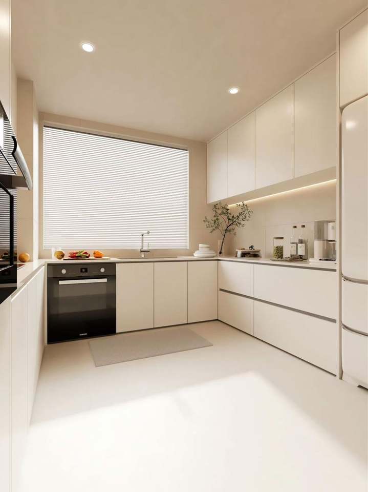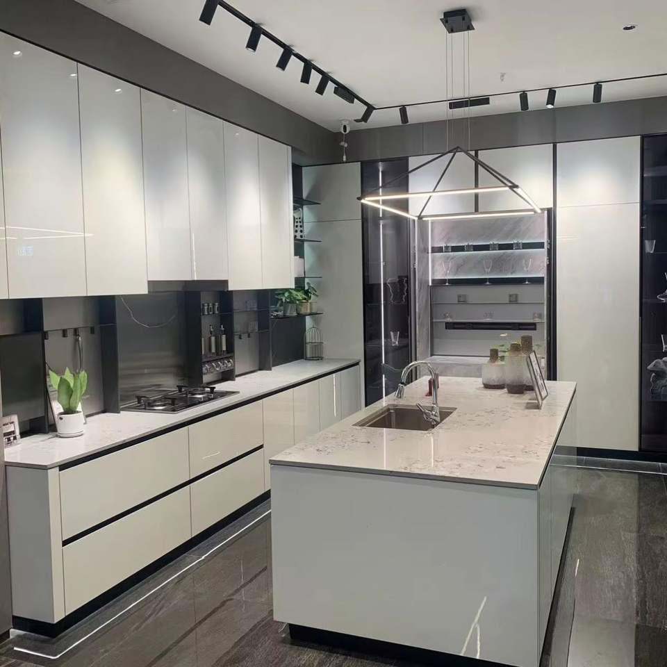 ตู้ครัวไม้แบบบิวท์อินทันสมัย สีขาว หรูหรา กันน้ำ เป็นมิตรกับสิ่งแวดล้อม