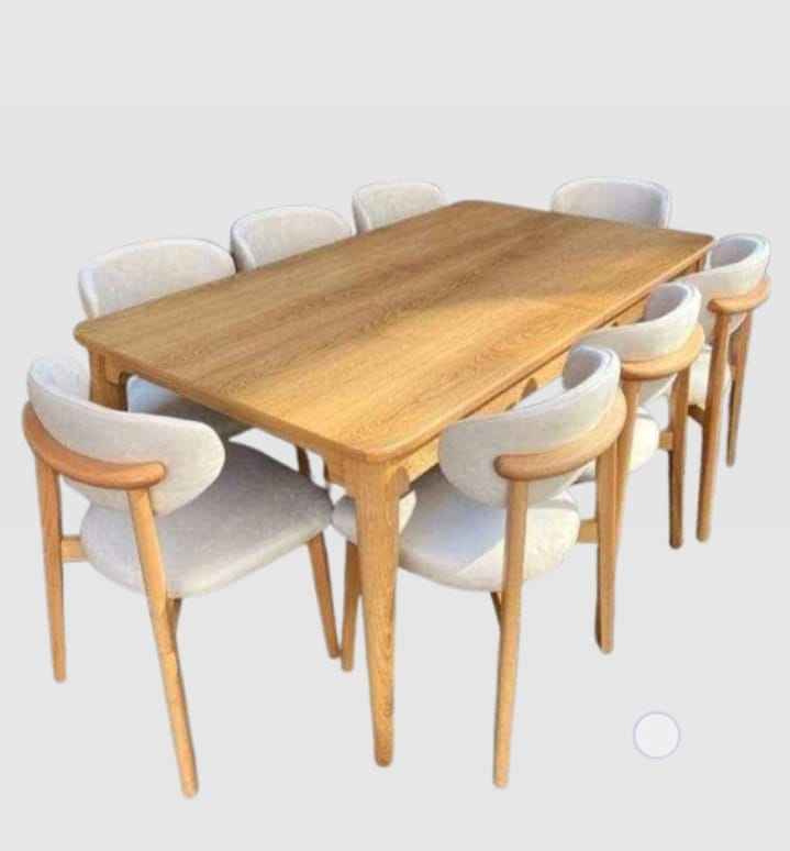 ชุดโต๊ะอาหารไม้โค้งรูปทรงทันสมัย เป็นมิตรกับสิ่งแวดล้อม พร้อมเก้าอี้ 8 ตัว และโต๊ะอาหาร