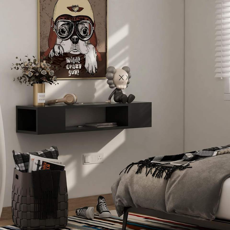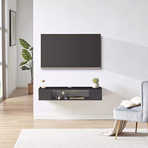 ทีวีแผงไม้แบบทันสมัยติดผนังพร้อมเต้ารับไฟฟ้าตู้ทีวีแบบลอยตัวชั้นวางสื่อสำหรับห้องนั่งเล่น