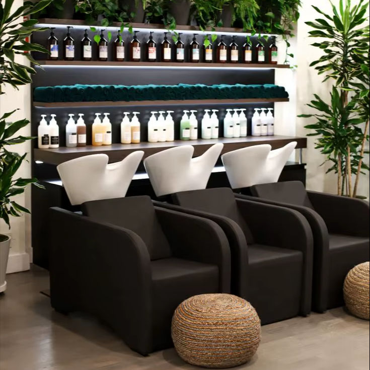 เก้าอี้สระผมไม้สไตล์โมเดิร์น พร้อมอ่างแชมพู สำหรับช่างทำผมมืออาชีพ เหมาะสำหรับใช้ในโรงยิม โรงแรม และคลังสินค้า