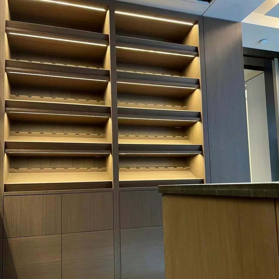 ตู้เก็บไวน์ไม้สไตล์โมเดิร์นสำหรับห้องรับประทานอาหาร โรงแรม หรือบ้าน สำหรับห้องนั่งเล่น โถงทางเดิน หรือห้องเก็บไวน์
