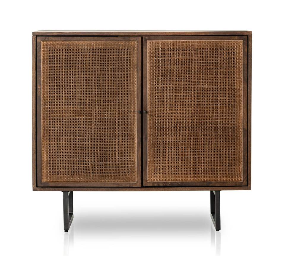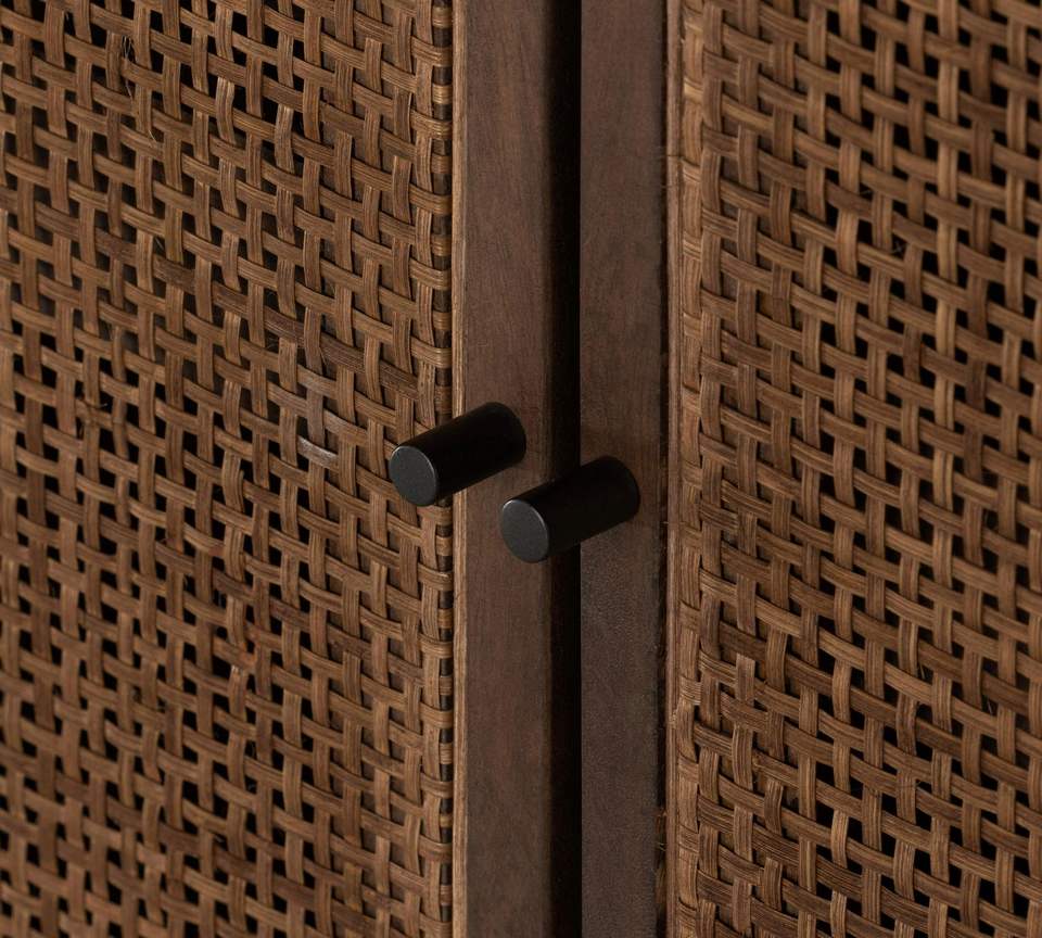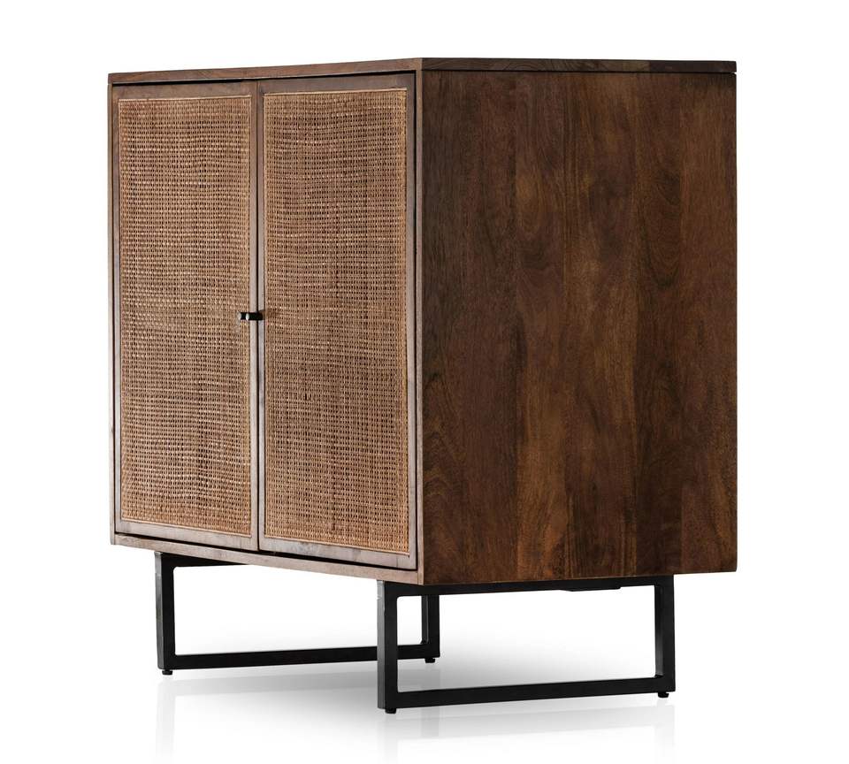 ตู้ไม้และหวายทันสมัยพร้อมขาโลหะดีไซน์ประตูคู่หรูหราเหมาะสำหรับการจัดเก็บในห้องนั่งเล่น
