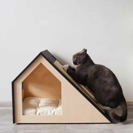 บ้านแมวไม้สไตล์โมเดิร์น พร้อมที่นอนข่วนเปลี่ยนได้-เฟอร์นิเจอร์แมวแบบถอดประกอบได้และเคลื่อนย้ายได้