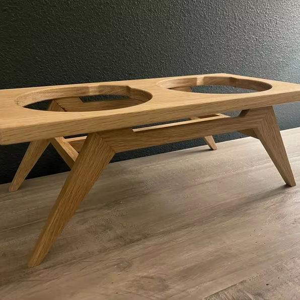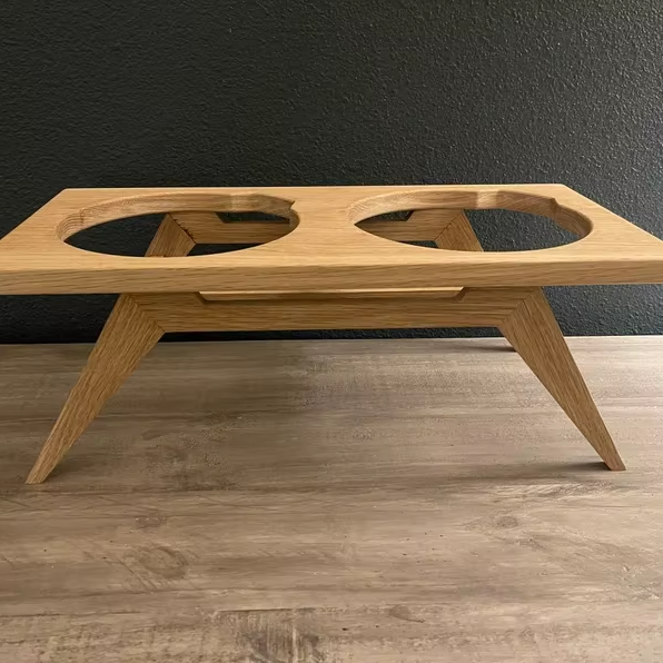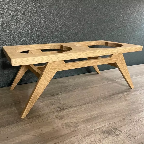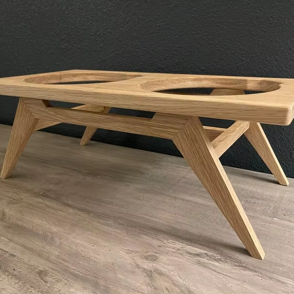ชั้นวางชามไม้และแมวสำหรับสุนัขทันสมัยปกป้องคอเพิ่มความสูงให้ทิปถอดได้