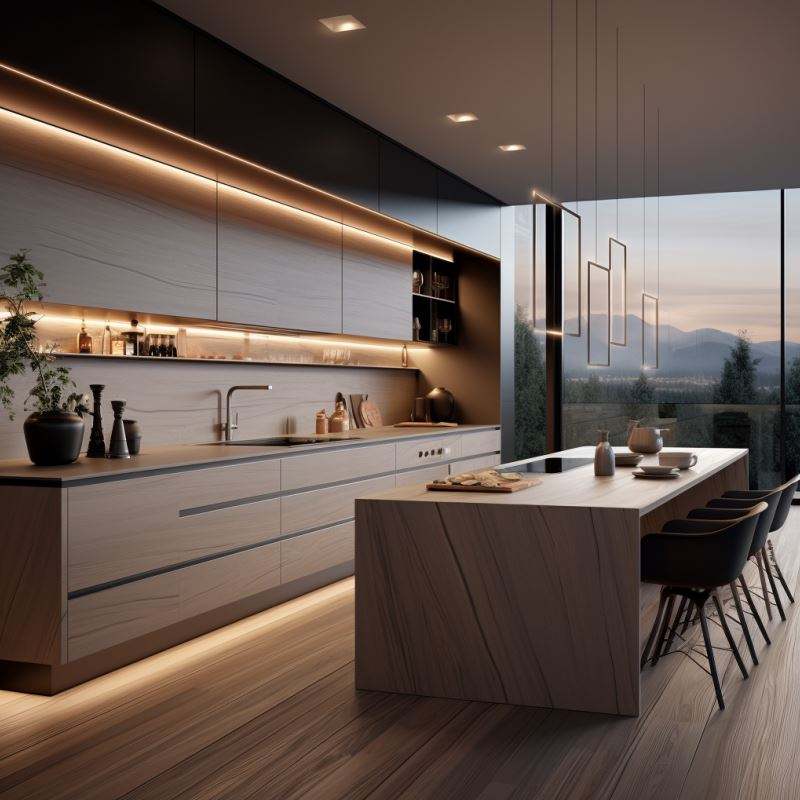 ลักษณะ:ทำด้วยไม้, เป็นมิตรกับสิ่งแวดล้อม, ทนไฟ, ครัวสมัยใหม่, ตู้ครัวแบบแยกส่วน