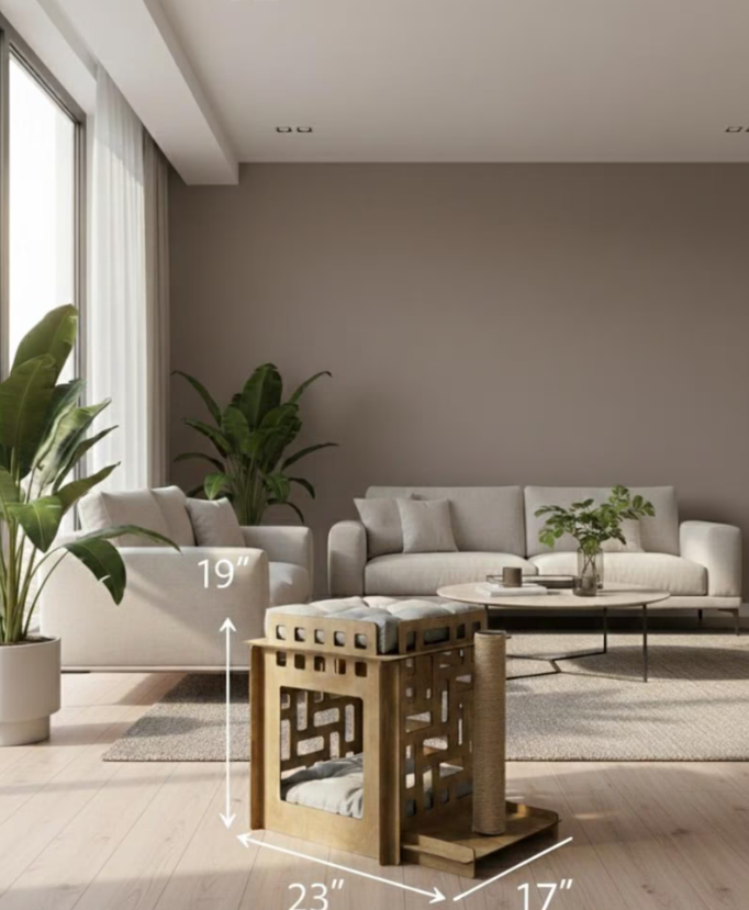 บ้านแมวไม้สมัยใหม่ ทำความสะอาดง่าย ขนาดใหญ่ ประกอบง่ายไม่ต้องใช้เครื่องมือ คอนโดแมวแบบโมดูลาร์ ทำจากไม้อัดเบิร์ช เฟอร์นิเจอร์สำหรับสัตว์เลี้ยง พร้อมเสาข่วนแบบแบน