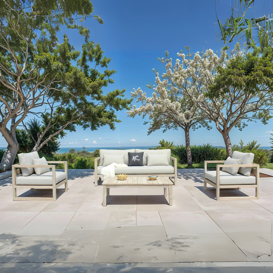 ชุดโซฟาเลานจ์กรอบไม้ที่ทันสมัยสำหรับพื้นที่สวนกลางแจ้ง