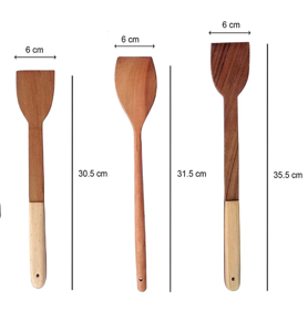 ชุดช้อนไม้สักธรรมชาติแบบ100% ที่ทันสมัยไม่ติดเรียบปลอดสารพิษขัดผิว30.5ย้อมสีธรรมชาติ31.5X35.5ซม. สีน้ำตาลธรรมชาติ