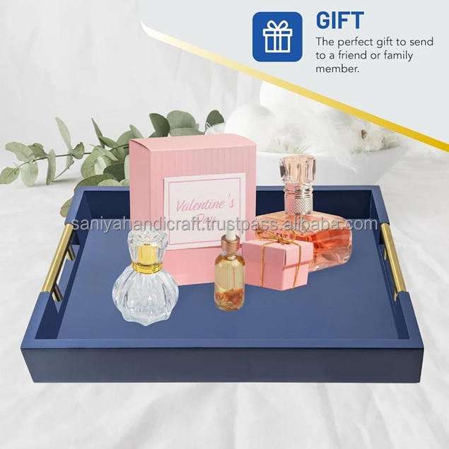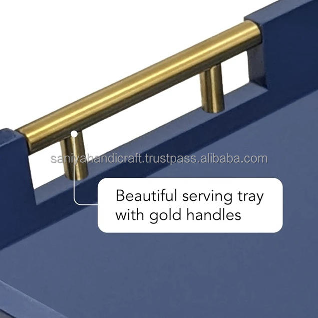 ถาดไม้รองแก้ว4คู่เป็นมิตรกับสิ่งแวดล้อมสีทองสีกรมท่าจับเงาสำหรับโต๊ะกาแฟออตโตมันทันสมัย