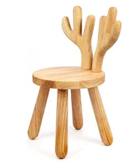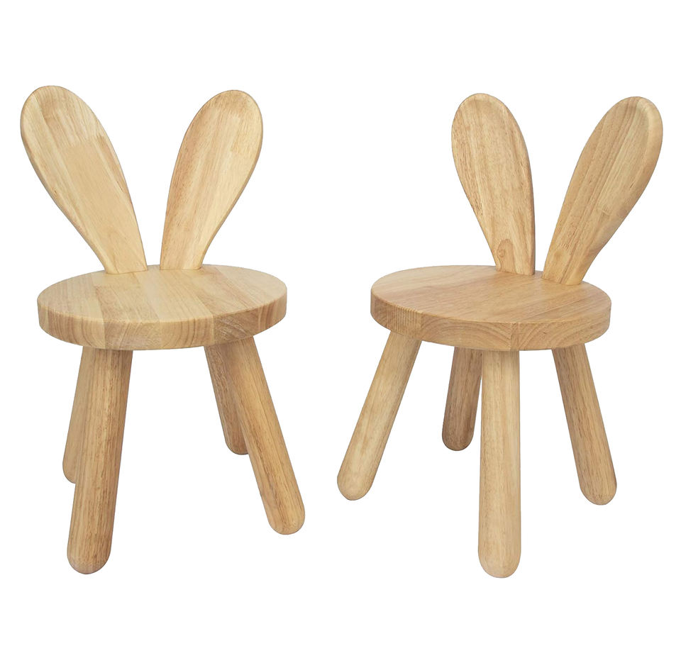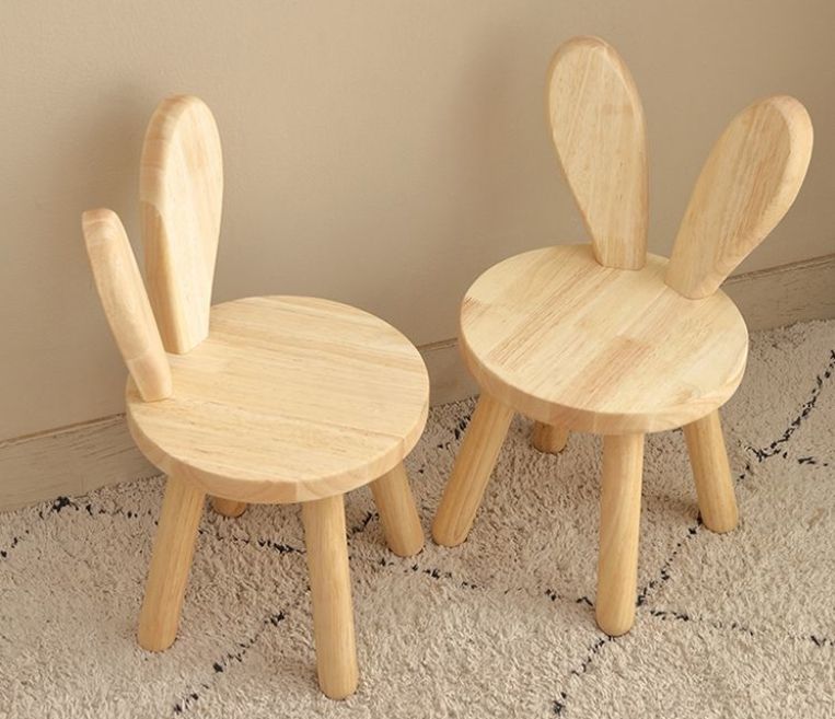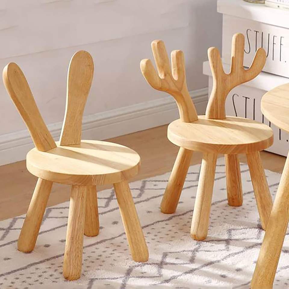 เก้าอี้เด็กเล็กไม้สไตล์โมเดิร์น ดีไซน์กระต่ายและเขากวาง ทำจากไม้เนื้อแข็งธรรมชาติ จัดส่งฟรี