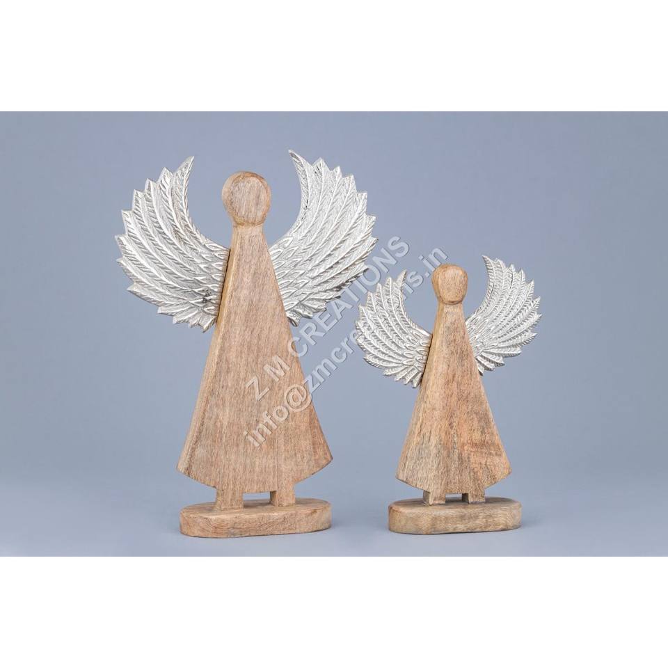 รูปปั้นต้นไม้ไม้ที่ทันสมัยพร้อมปีกโลหะของตกแต่งบ้านเทศกาลคริสต์มาสชุดตกแต่งภายในที่ทนทานและเป็นมิตรต่อสิ่งแวดล้อม