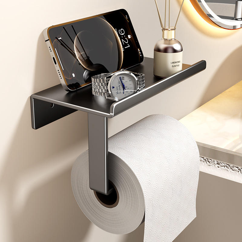 ที่ใส่กระดาษชำระติดผนังไม้สไตล์โมเดิร์น รูปทรงสี่เหลี่ยม ไม่ต้องเจาะ ชั้นวางกระดาษอเนกประสงค์ สีขาวครีม