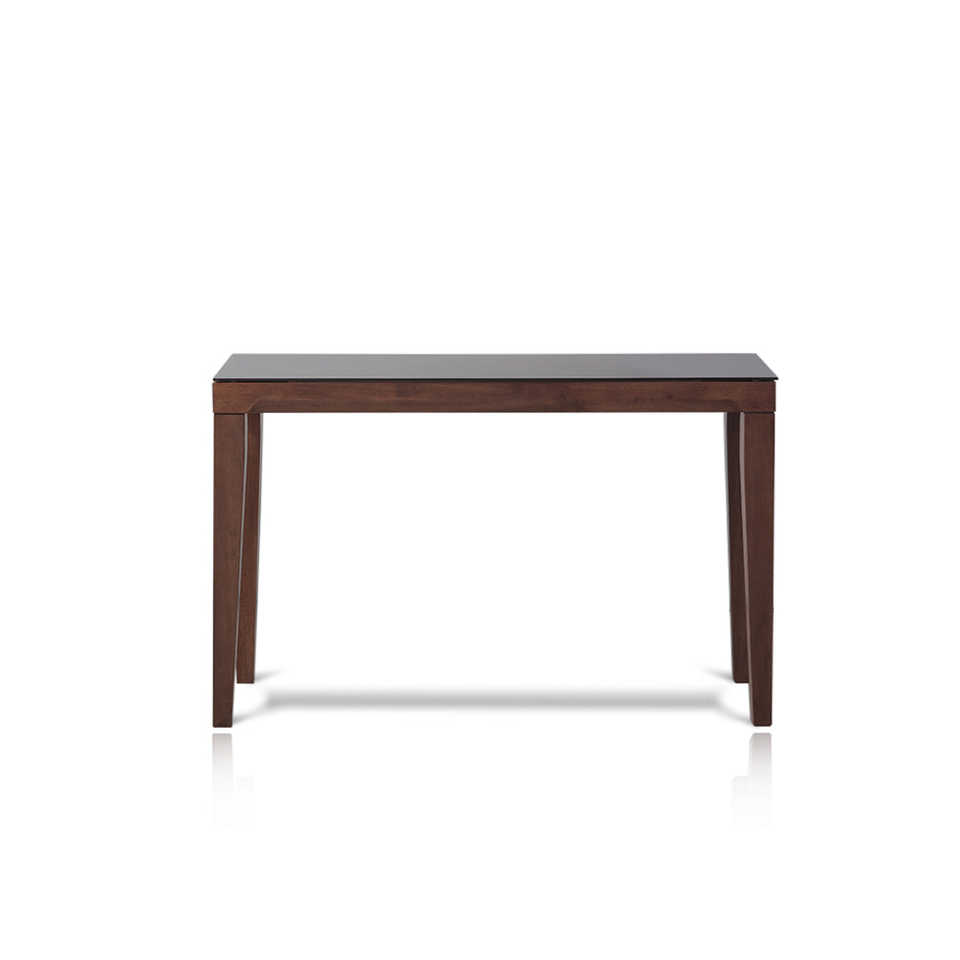 Modern Wooden dining Table with Sleek Black Glass Top Elegant Entryway or Hallway Table with Solid Wood Frame