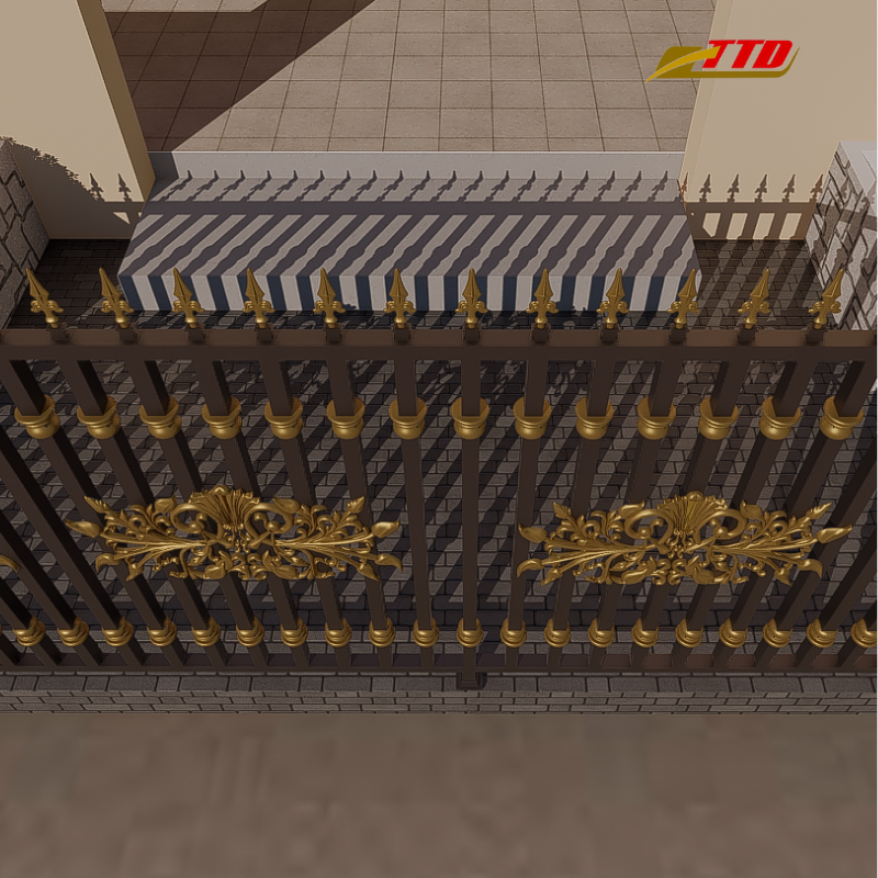 โซลูชันรั้วเหล็กดัดที่ทันสมัยสำหรับวิลล่าสวนและพื้นที่สาธารณะกลางแจ้งที่ใช้ความร้อนไม้3D แบบจำลองที่ผลิตในเวียดนาม