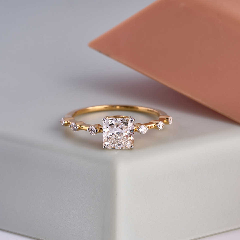แหวนเพชรทรงคลาสสิกสมัยใหม่สีเหลืองทองประดับเพชรเรเดียนท์ พร้อมด้วยทองชุบเคลือบเงาได้รับการรับรองจาก IGI เหมาะสำหรับเป็นของขวัญวันครบรอบ