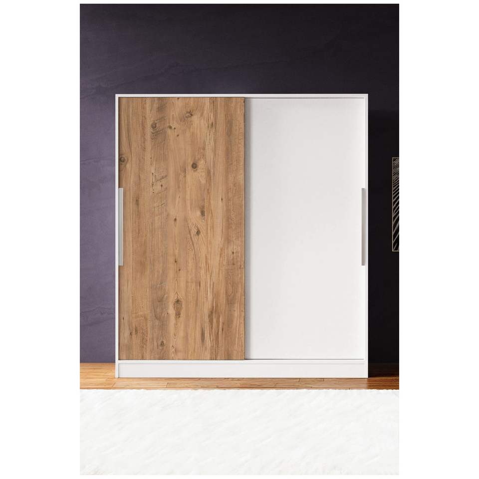 ตู้เสื้อผ้าบานเลื่อนไม้สนสีขาว AekaOnline รุ่น Modern Zambak ขนาด 160 ซม. จากตุรกี เหมาะสำหรับห้องนอนขนาดเล็ก มีชั้นวาง 11 ชั้น และตู้เก็บของแบบตั้งพื้น 2 ตู้