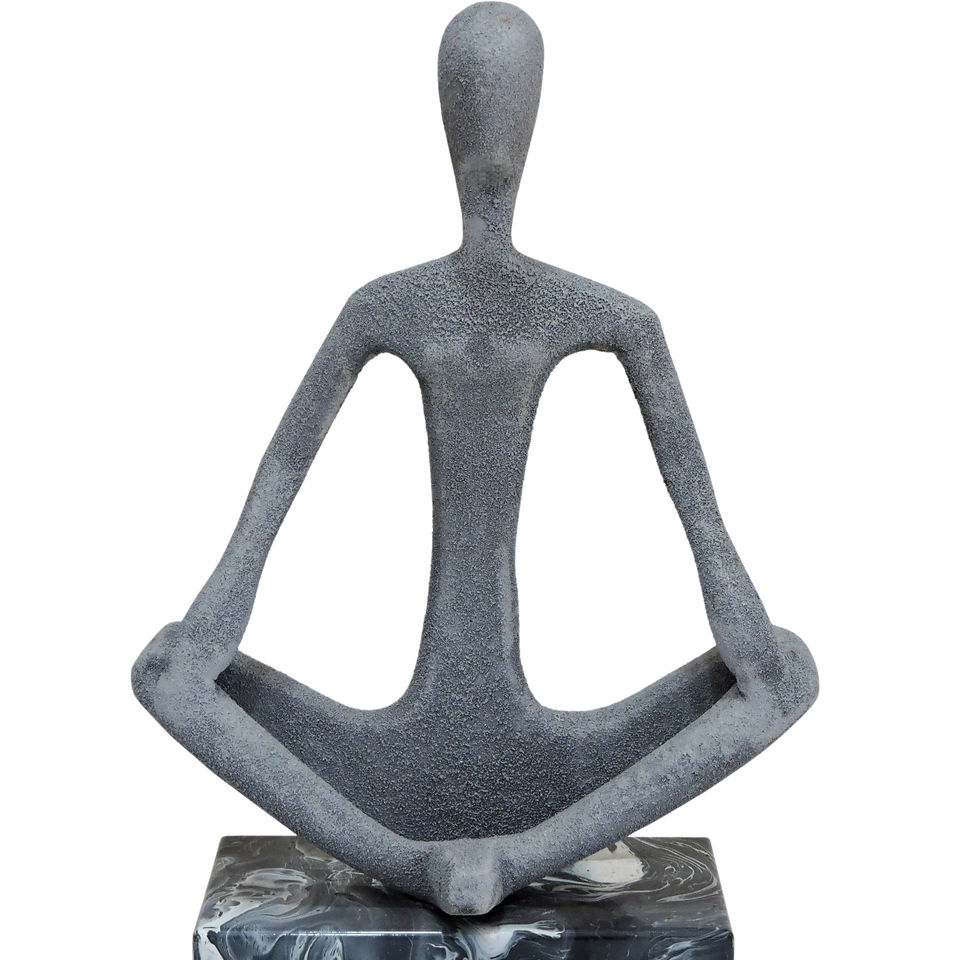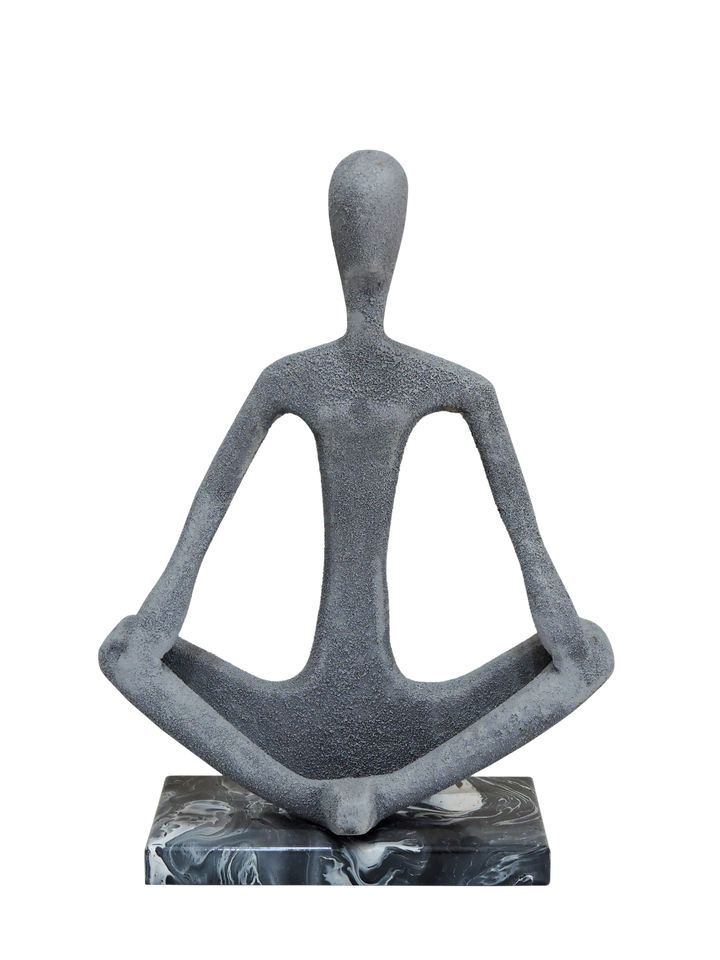 Modern Zen Yoga Pose Aluminium Sculpture - Abstract Meditating Human Figurine with Marble Base for Minimalist Home Office Decor