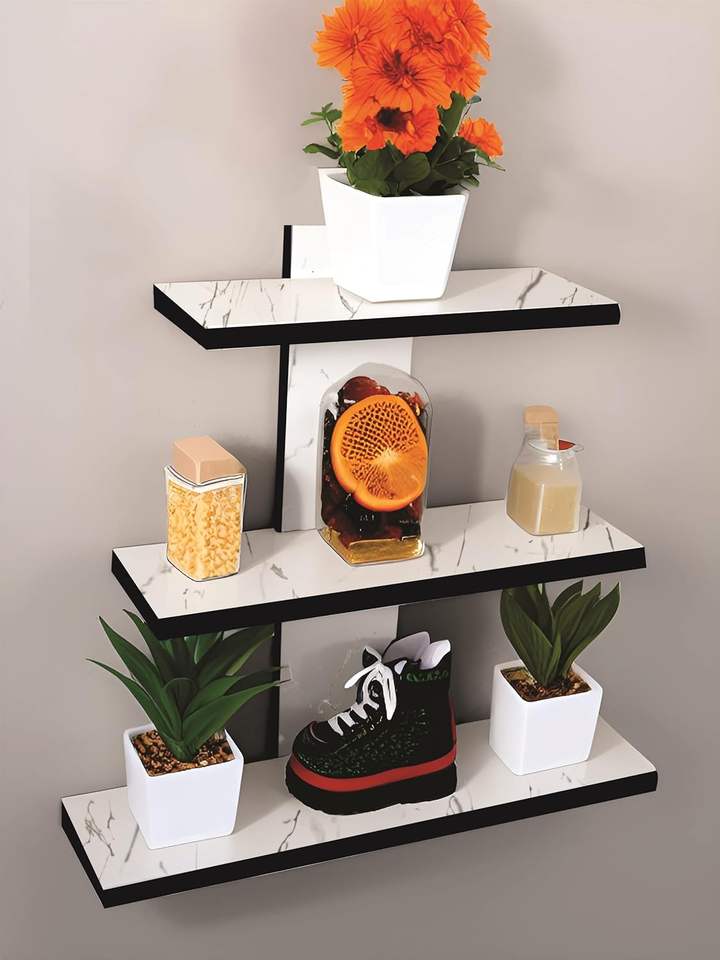 ชั้นวางของติดผนังไม้ทันสมัยและสวยงาม ของตกแต่งบ้าน ผิวมันเงา ชุด 1 ชิ้น สีขาว