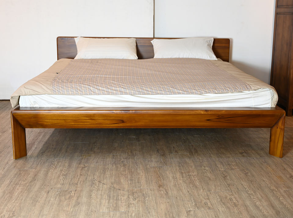 เตียงนอนขนาดคิงไซส์สไตล์แคลิฟอร์เนียทำจากไม้สักหลังต่ำทันสมัยและสง่างาม