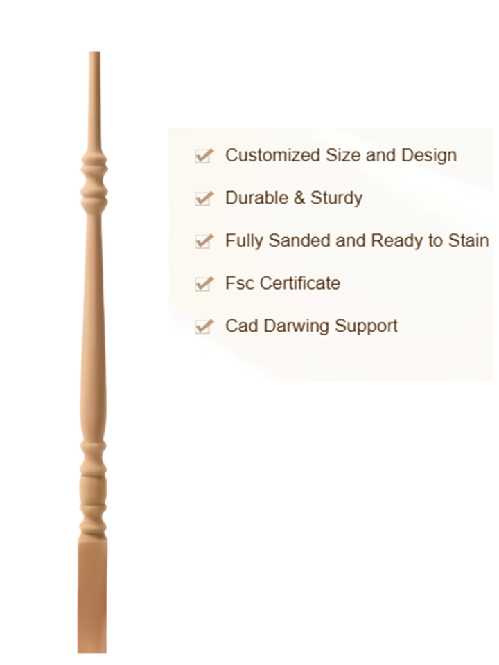 เข็มกลัดไม้สไตล์โมเดิร์นและมินิมอลลิสต์บอลสเตอร์5300P 34 "โรงงานไม้โอ๊คสีแดงปรับแต่งชิ้นส่วนบันไดได้โดยตรง