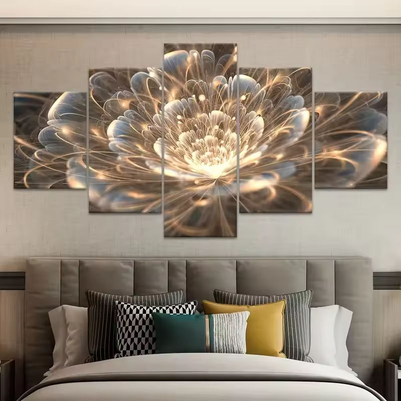โปสเตอร์ผ้าใบกรอบดอกไม้ที่แวววาวและภาพวาดบนผืนผ้าใบสำหรับตกแต่งผนังห้องนั่งเล่น