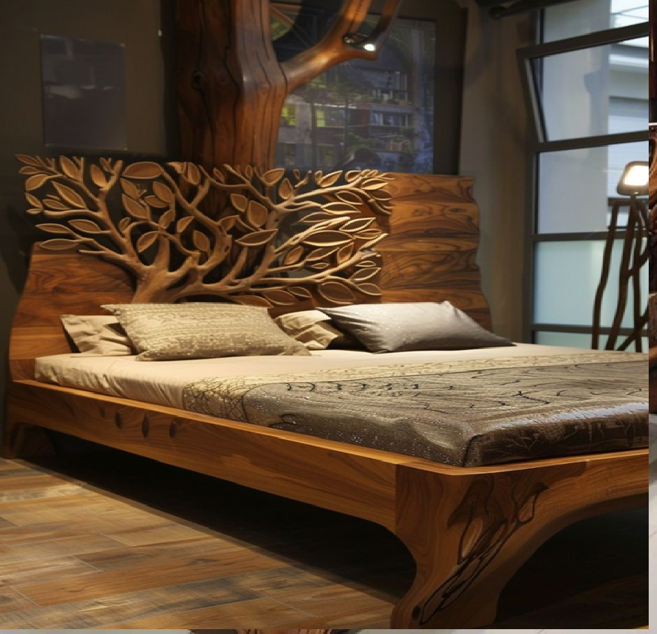 เตียงนอนดีไซน์ทันสมัยพร้อมลวดลายกิ่งไม้ที่สวยงามและโครงสร้างเรียบหรูทรงเตี้ย มีจำหน่ายในราคาขายส่ง