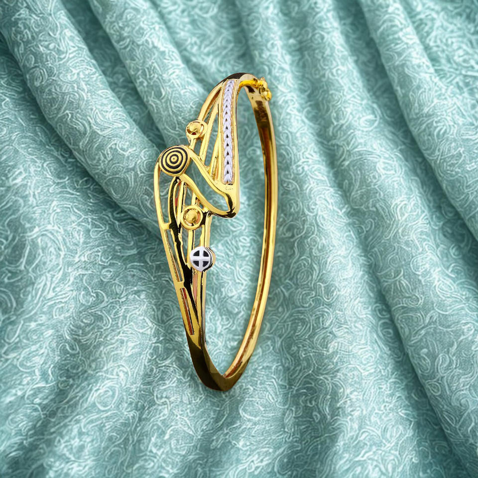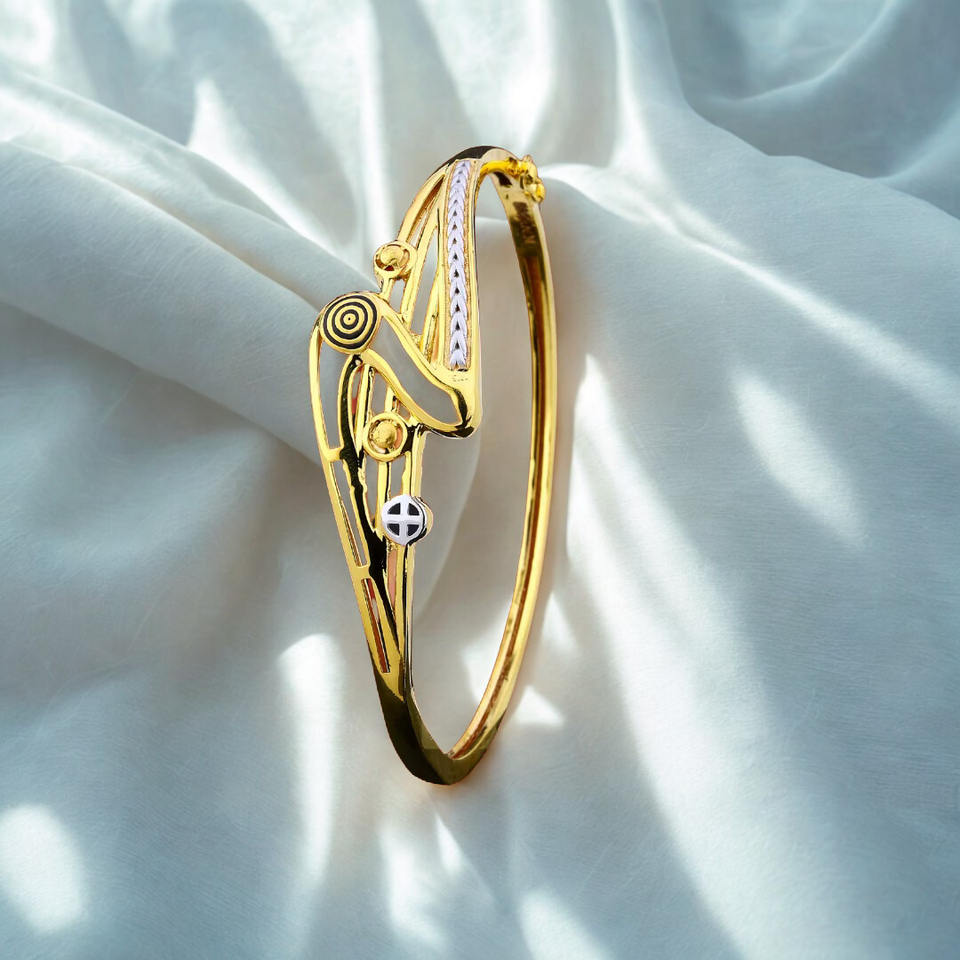 กำไลทองคำดีไซน์ทันสมัยสำหรับผู้หญิง พร้อมลวดลายฉลุสุดพิเศษและรายละเอียดสองสี ดีไซน์เก๋ไก๋จากคินโนวา จิวเวลส์