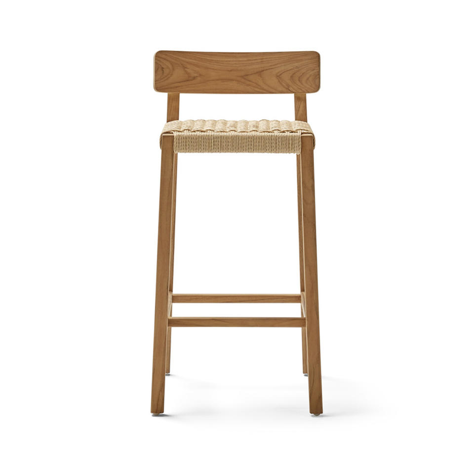 เก้าอี้บาร์ทันสมัยพร้อมโครงไม้สักแท้และเบาะหวายกระดาษถักสำหรับใช้ในบ้าน บาร์ โรงแรม และร้านอาหาร