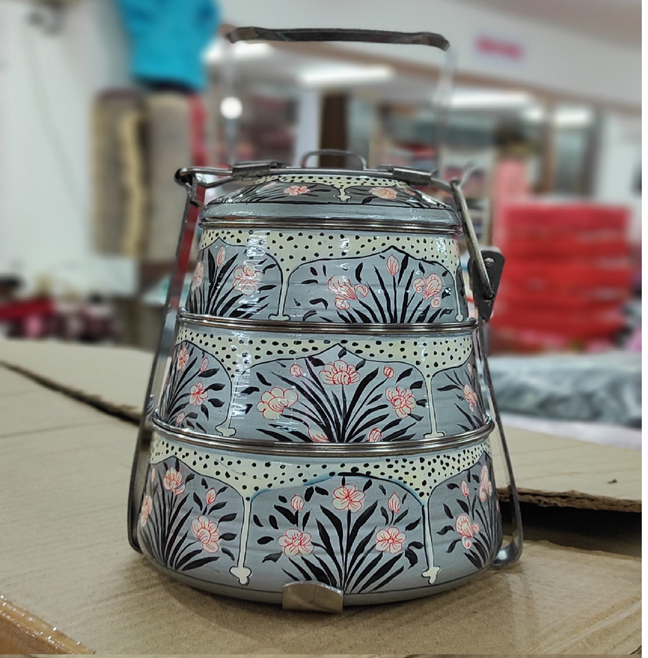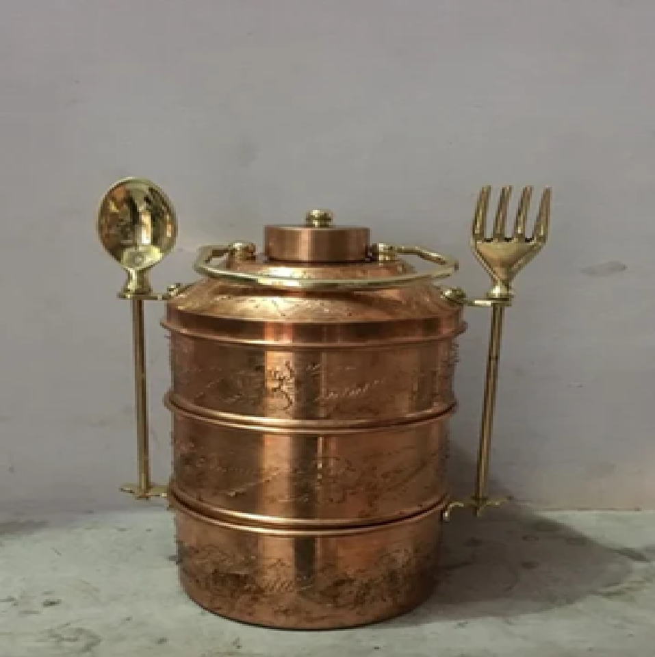กล่องข้าวทองเหลืองสมัยใหม่ 2 ชั้น มีหูหิ้วข้าง ชุดเก็บอาหารทรงกลมขนาดเล็กสำหรับครัว มีจำหน่ายในราคาขายส่ง