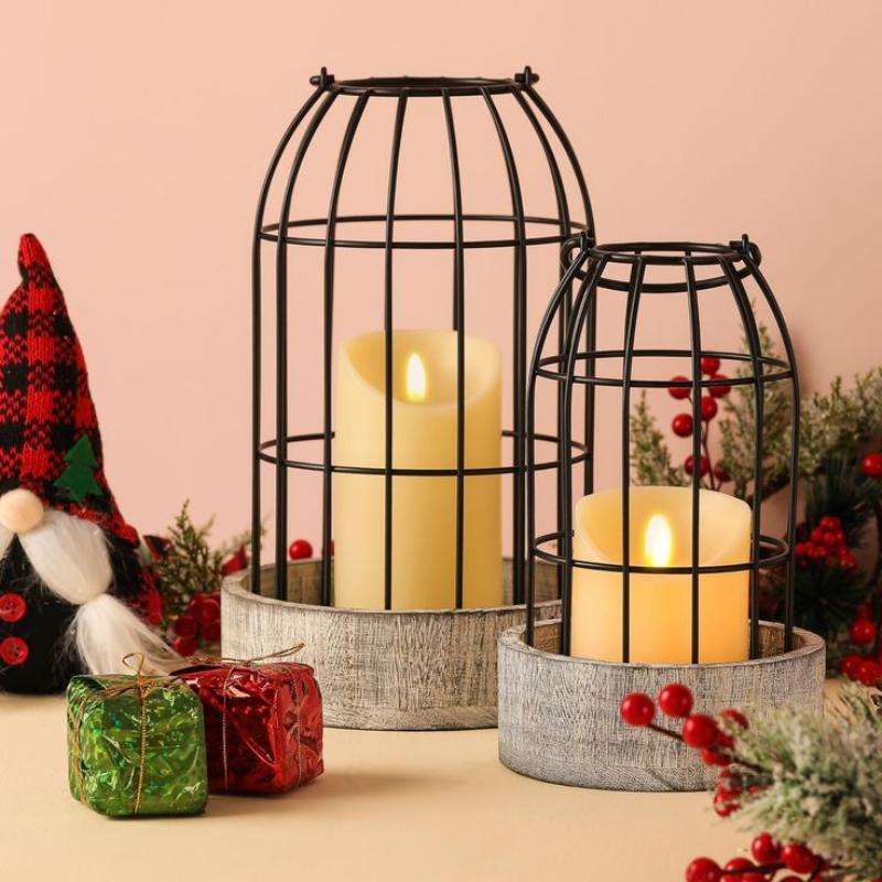 ชุดเชิงเทียนไม้และโลหะดีไซน์ทันสมัยเชิงเทียนที่ใส่เทียนดีไซน์กรงโลหะ2ชิ้นรูปทรงและขนาดที่กำหนดเองได้