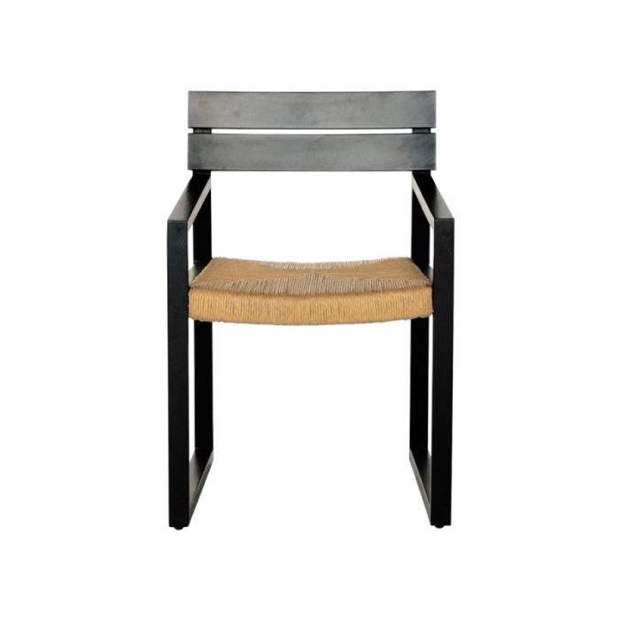 เก้าอี้รับประทานอาหารที่ทันสมัยทำจากโครงไม้สักแข็งที่มีหวายสังเคราะห์ทอบนที่นั่งสำหรับการใช้งานในร่มและกลางแจ้ง