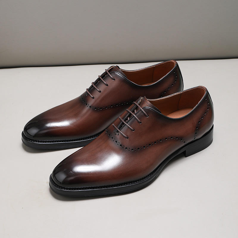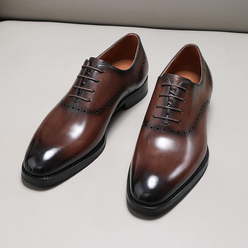 รองเท้าหนังแท้ทรงหัวแหลมแบบผูกเชือก งานแฮนด์เมดทันสมัย เหมาะสำหรับใส่ทำงานและโอกาสต่างๆ สวมใส่สบาย ระบายอากาศได้ดี พื้นรองเท้ากันน้ำ
