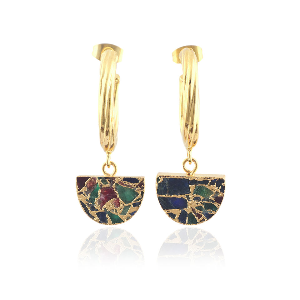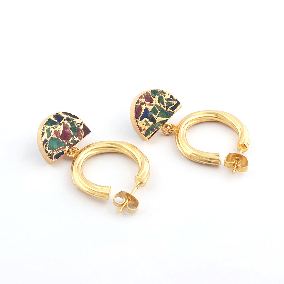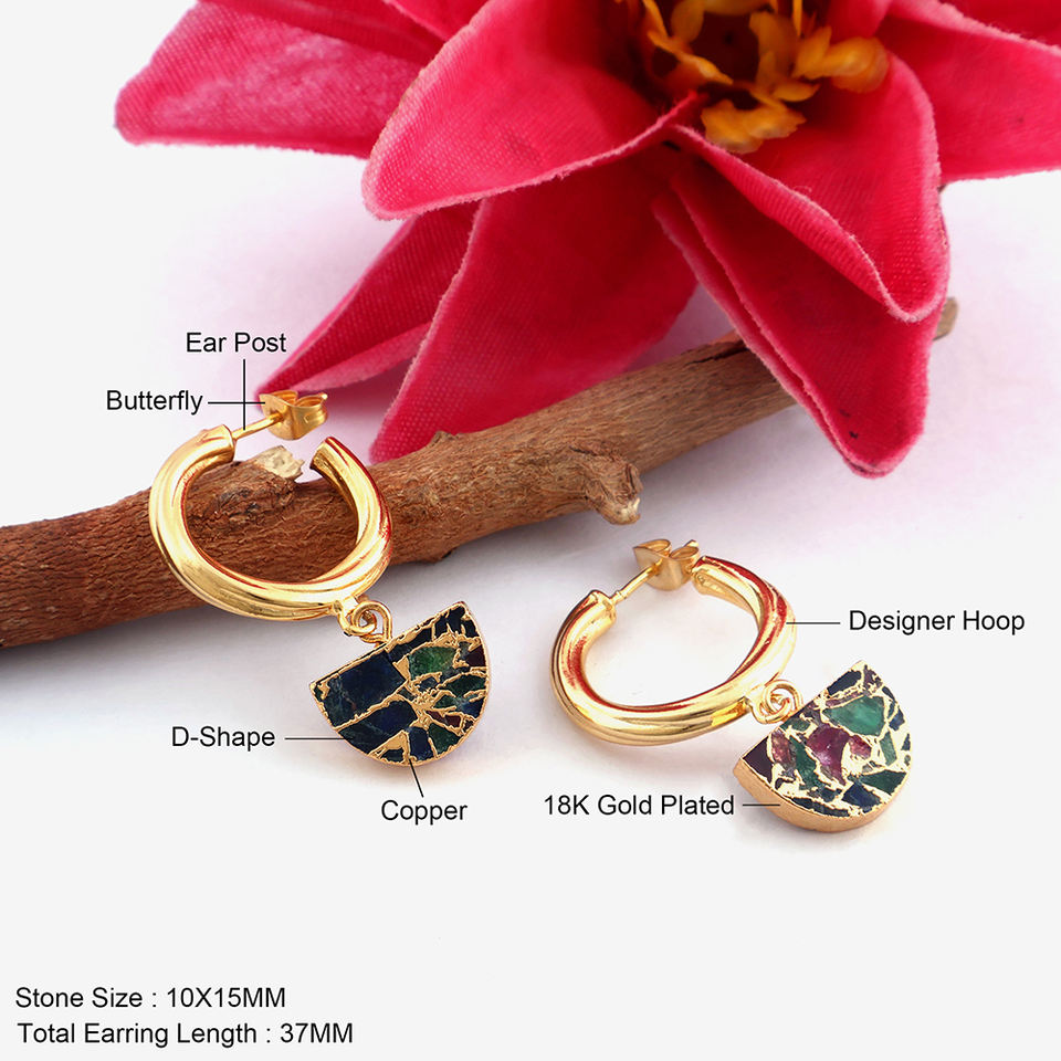 Mohave ต่างหูทองแดงสีผสมสีเทอร์ควอยซ์หยกห่วงทองเหลืองชุบทอง18K ต่างหูออกแบบรูปทรงเรขาคณิตของขวัญสำหรับผู้หญิง