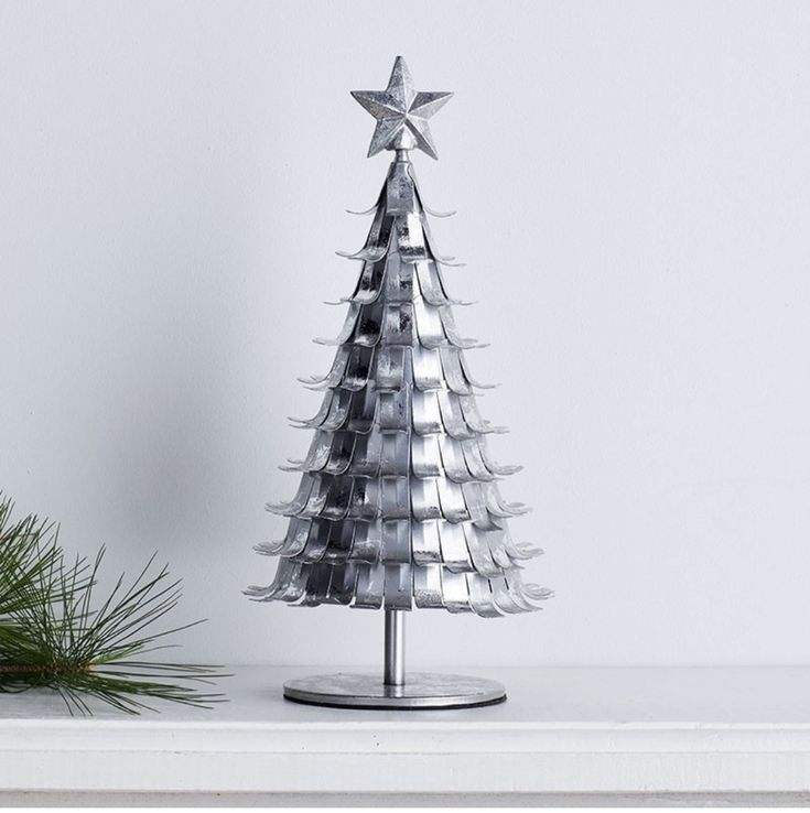 ต้นคริสต์มาสโลหะทรงเรขาคณิตทันสมัย เหมาะสำหรับพื้นที่ตกแต่งในวันหยุดที่ได้รับแรงบันดาลใจจากงานศิลปะนามธรรม หรือการจัดแสดงในฤดูหนาวที่เรียบหรูและมีสไตล์