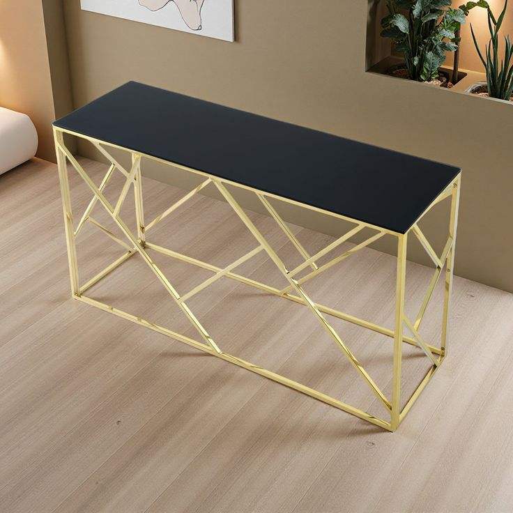 คอนโซลสีทองทันสมัยพร้อมลิ้นชักหินอ่อนสีดำที่ใช้งานได้จริง มีจำหน่ายในราคาขายส่งสำหรับของตกแต่งระดับพรีเมียม