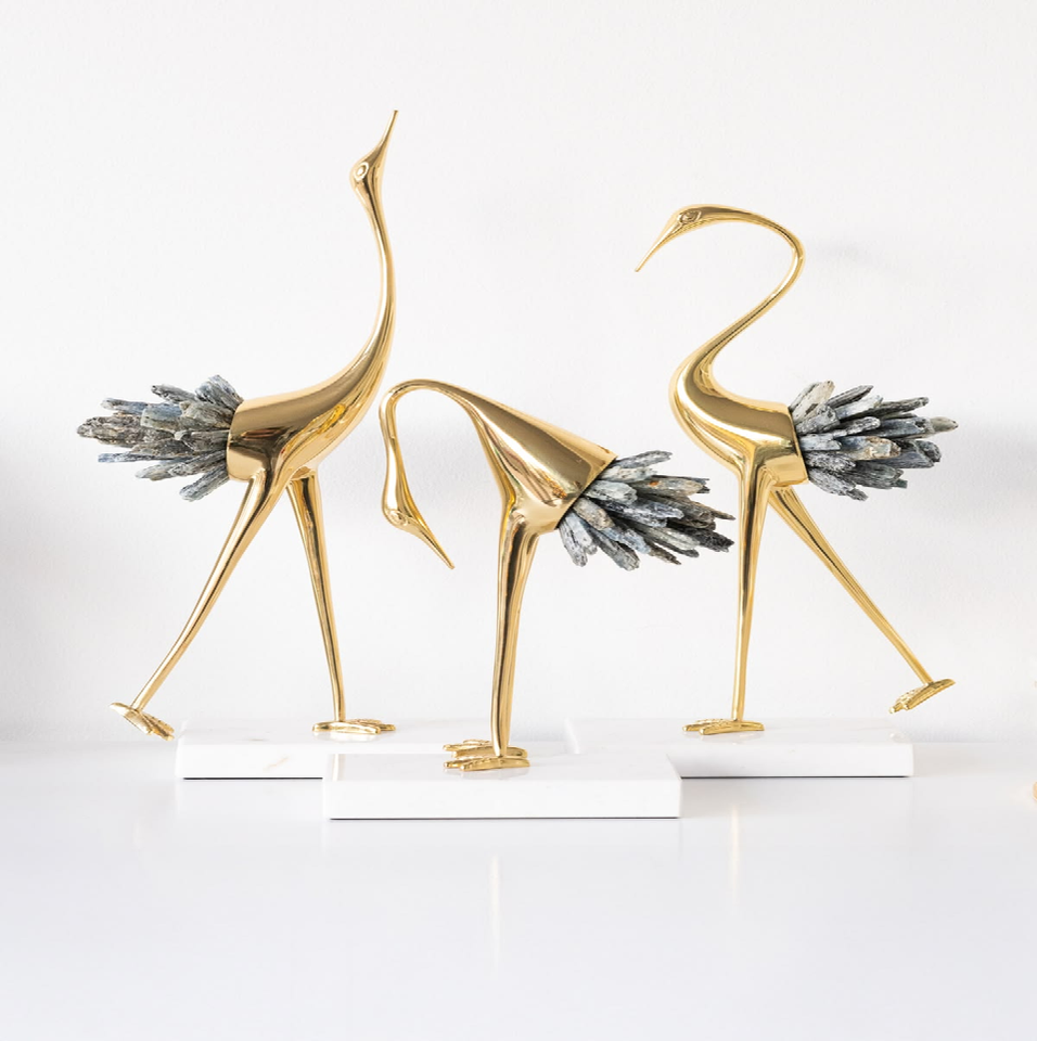 นกกระเรียนทองคำสมัยใหม่ ประดับด้วยหางคริสตัลสีเทาแบบพิเศษ มีจำหน่ายในราคาขายส่ง